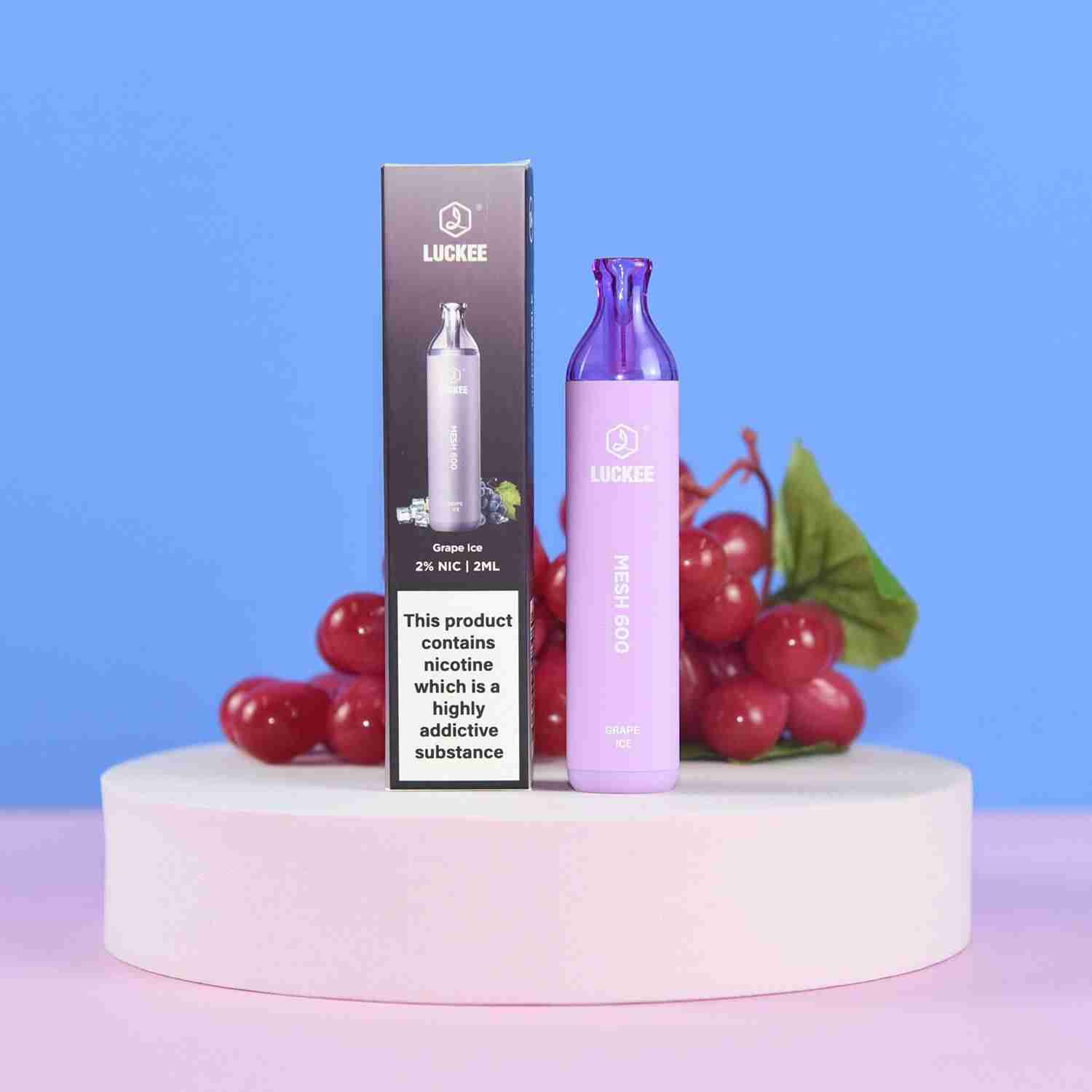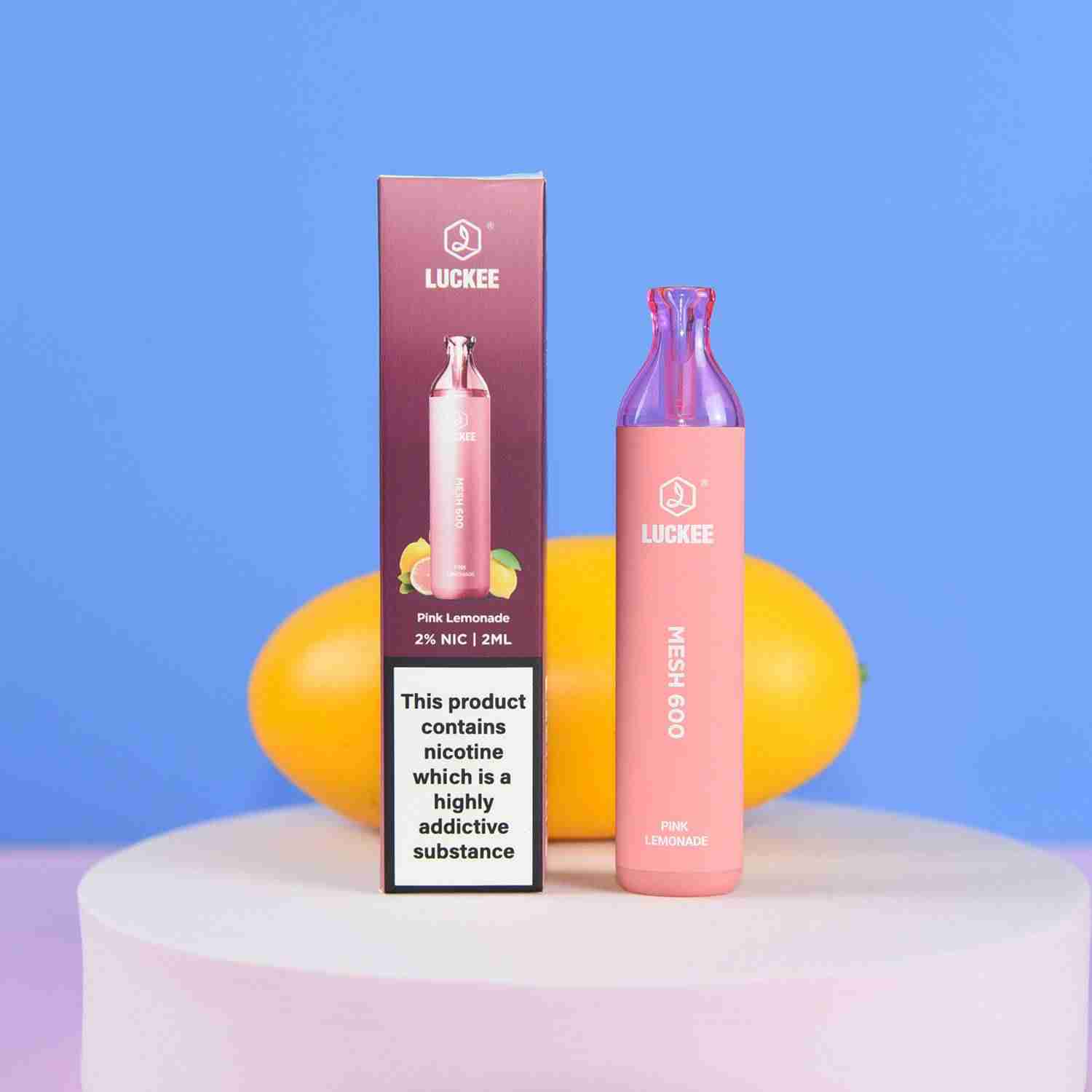 LUCKEE MESH 600 is a compact disposable vape, delivering 600 puffs with 2% nicotine. It features a 2ml e-liquid capacity with 20mg nicotine strength and is powered by a 500mAh battery. With flavors like Pomelo Passion Fruit and Strawberry Ice Cream, it offers a diverse and satisfying vaping experience. Each carton contains 400 units, weighing 13kg.